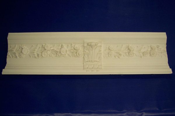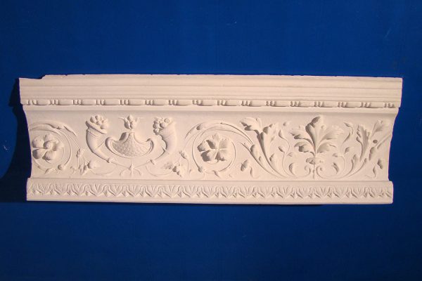 So können florale Muster auf Gesimsen und Stäben als Strangware produziert und dann am Bauwerk angesetzt werden. Ecken, Gehrungen und Endungen werden von Hand ausgebildet (frei modelliert).