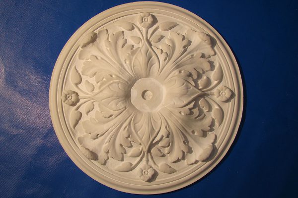 Ornamentierte Rosetten werden in Formen hergestellt und passen am besten zu ornamentierten Gesimsen bzw. Hohlkehlen. Wir schätzen uns glücklich bei einigen Rosetten die genau dazugehörigen Gesimse mit anbieten zu können.